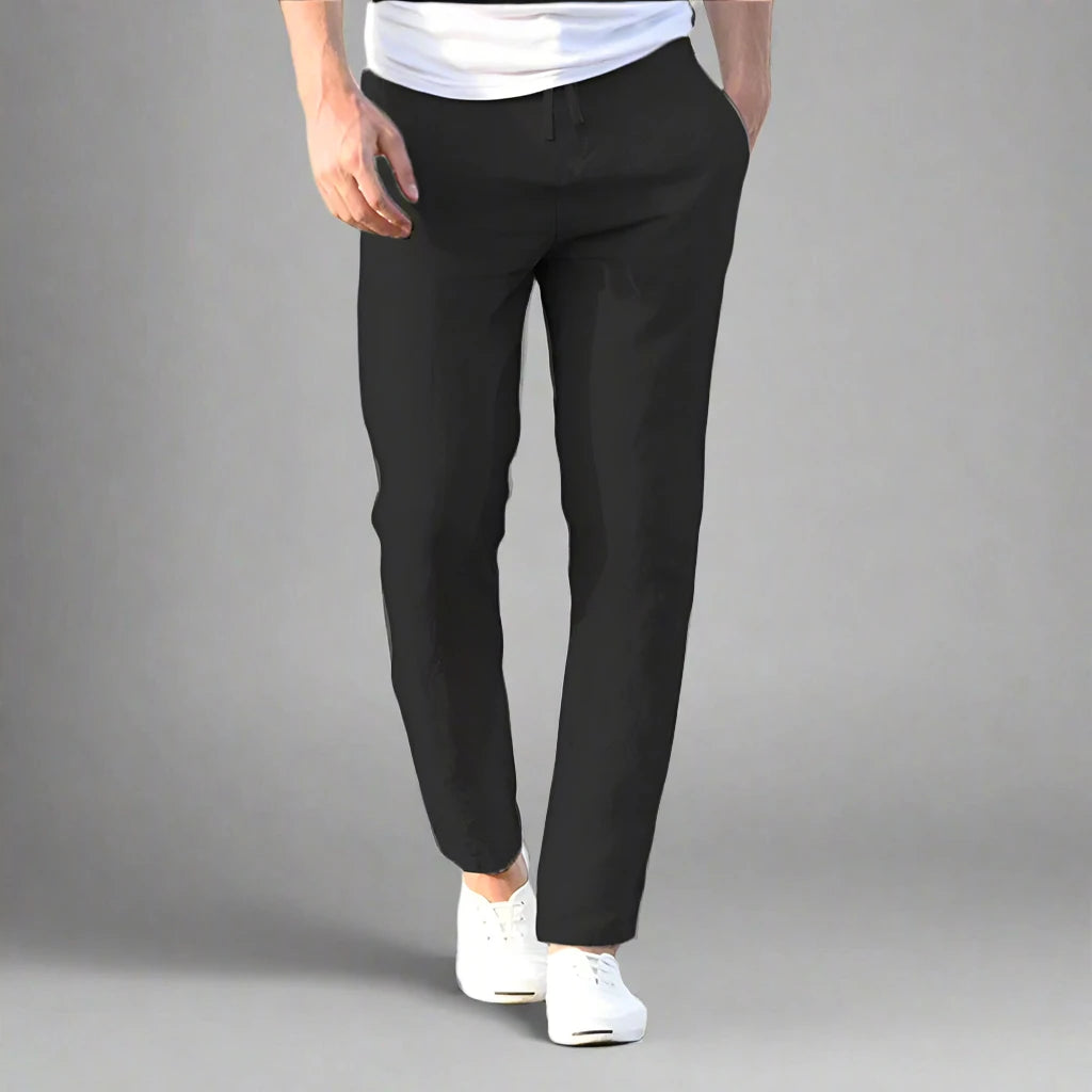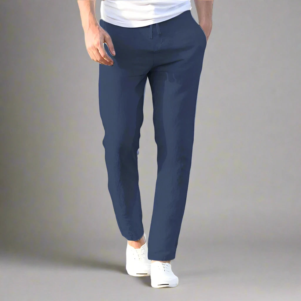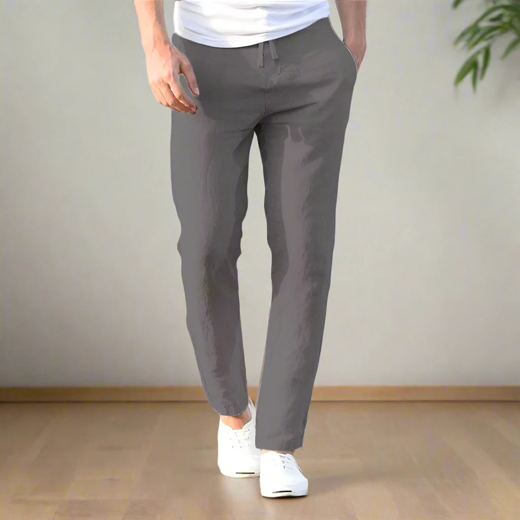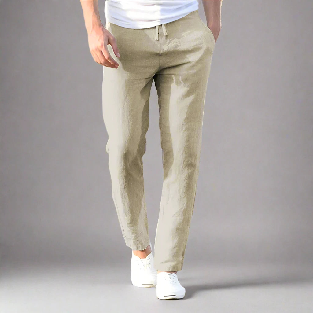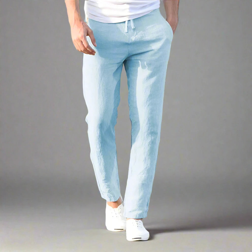 Effortlessly refined, Breathable linen-blend pants feature a lightweight feel and relaxed silhouette perfect for warm-weather days. A drawstring waist and clean tailoring deliver casual comfort with seamless style.
