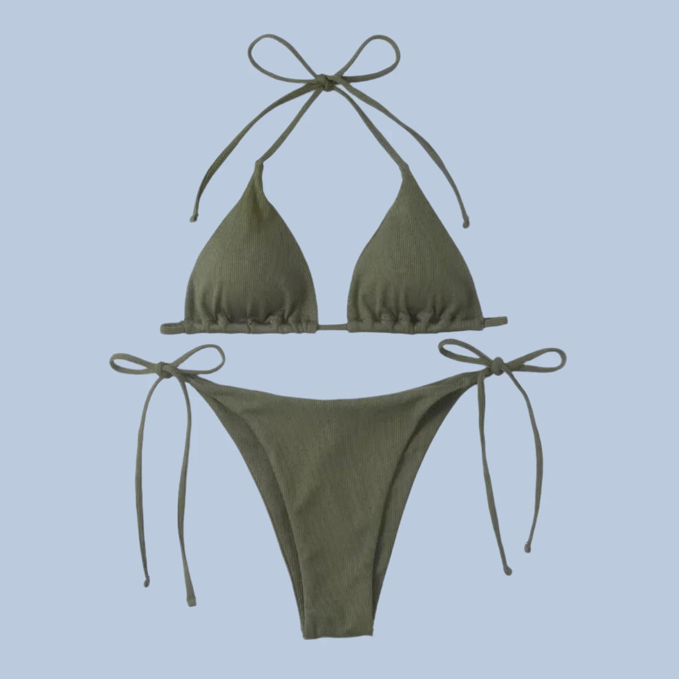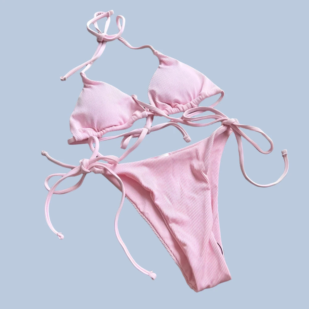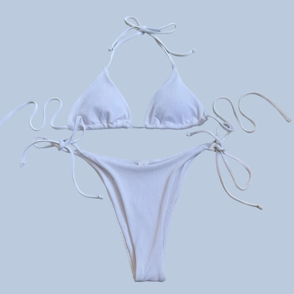 This classic string bikini features a triangle top and tie-side bottoms for a simple, flattering fit. Its clean, minimal design makes it easy to mix, match, and wear all season long.