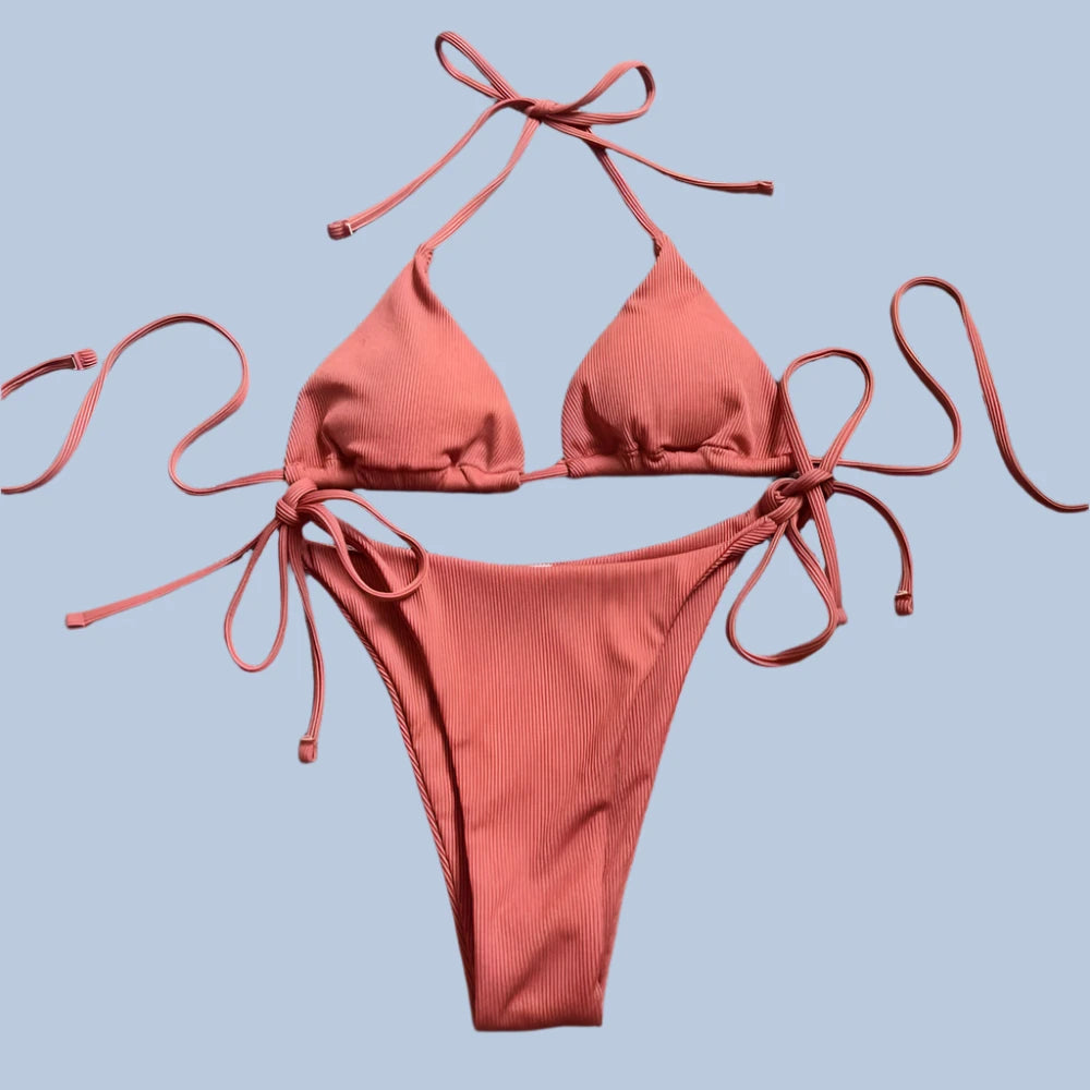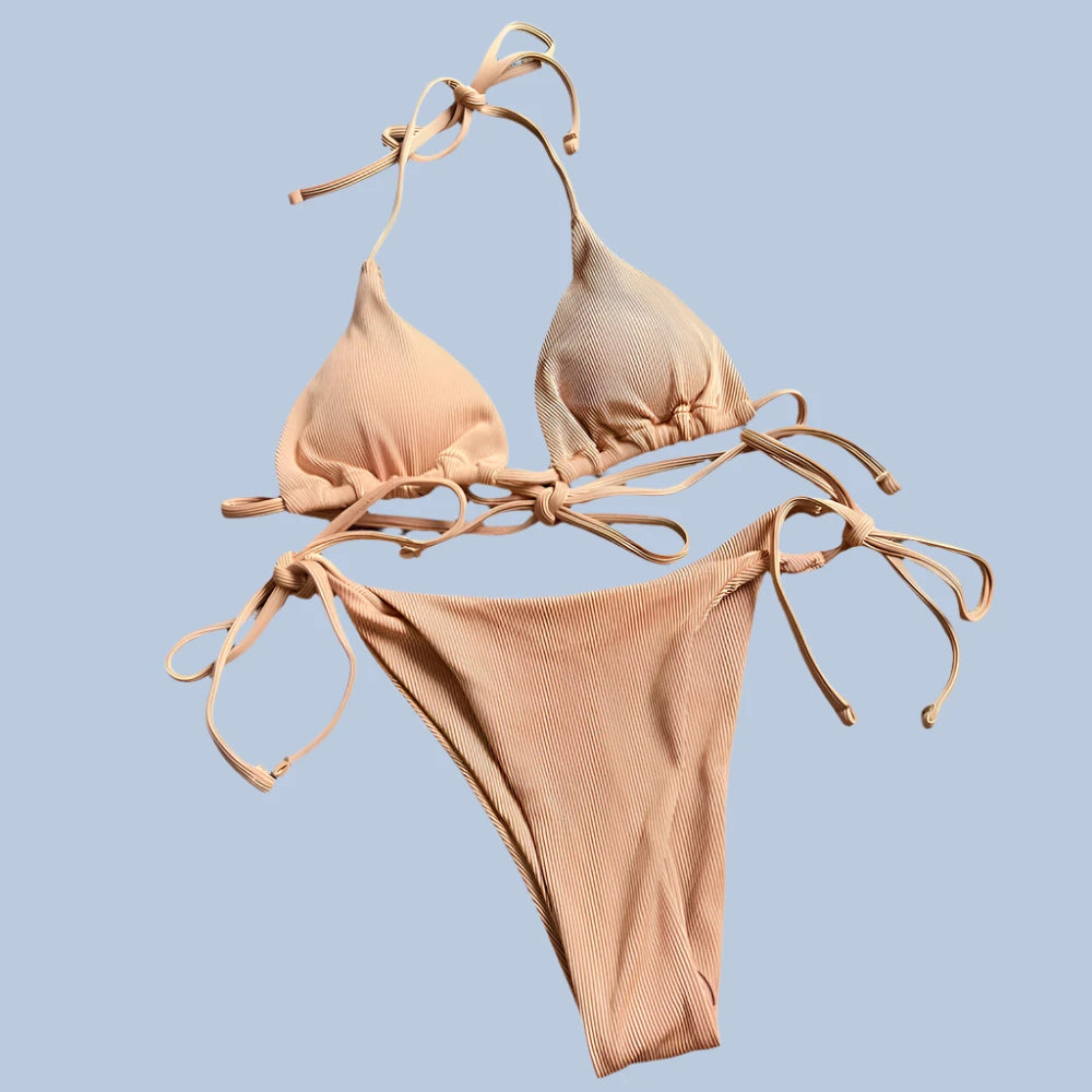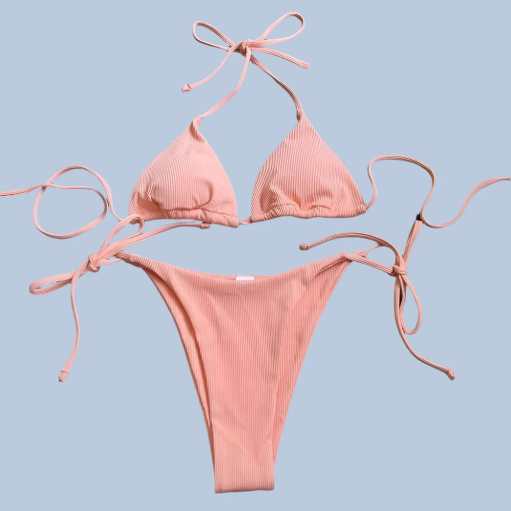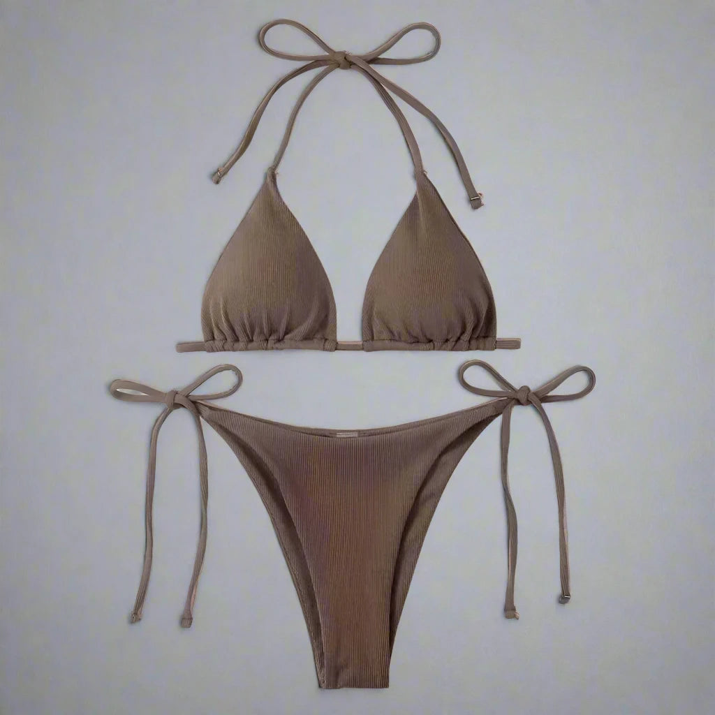 This classic string bikini features a triangle top and tie-side bottoms for a simple, flattering fit. Its clean, minimal design makes it easy to mix, match, and wear all season long.