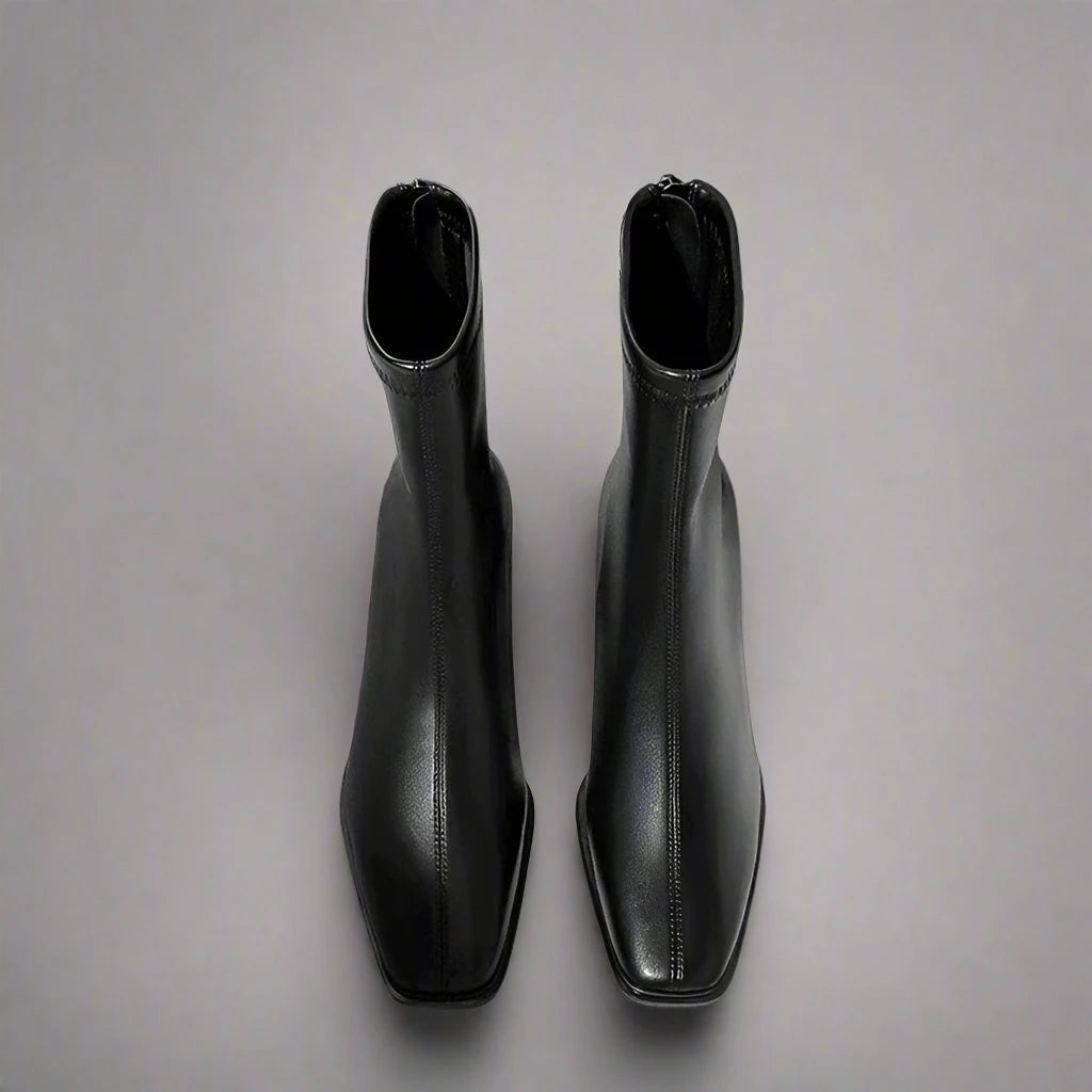 Square toe design lends a contemporary edge