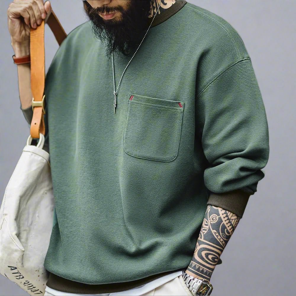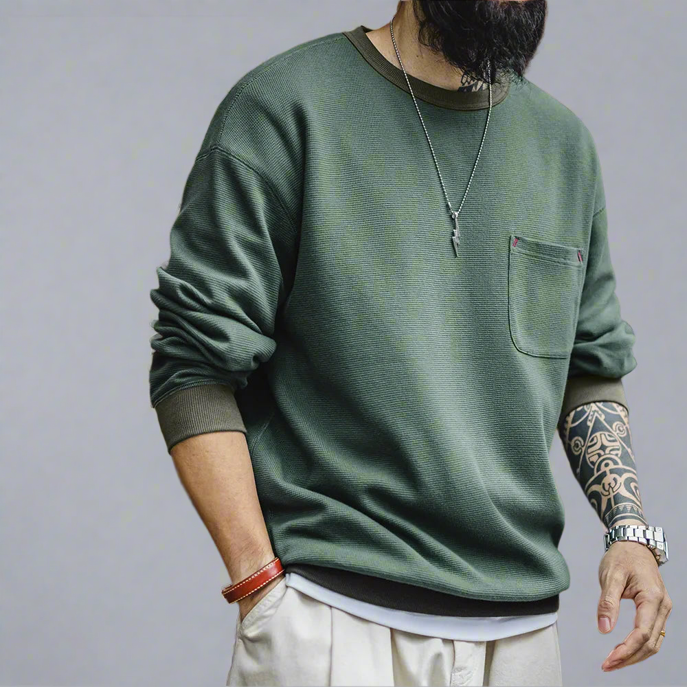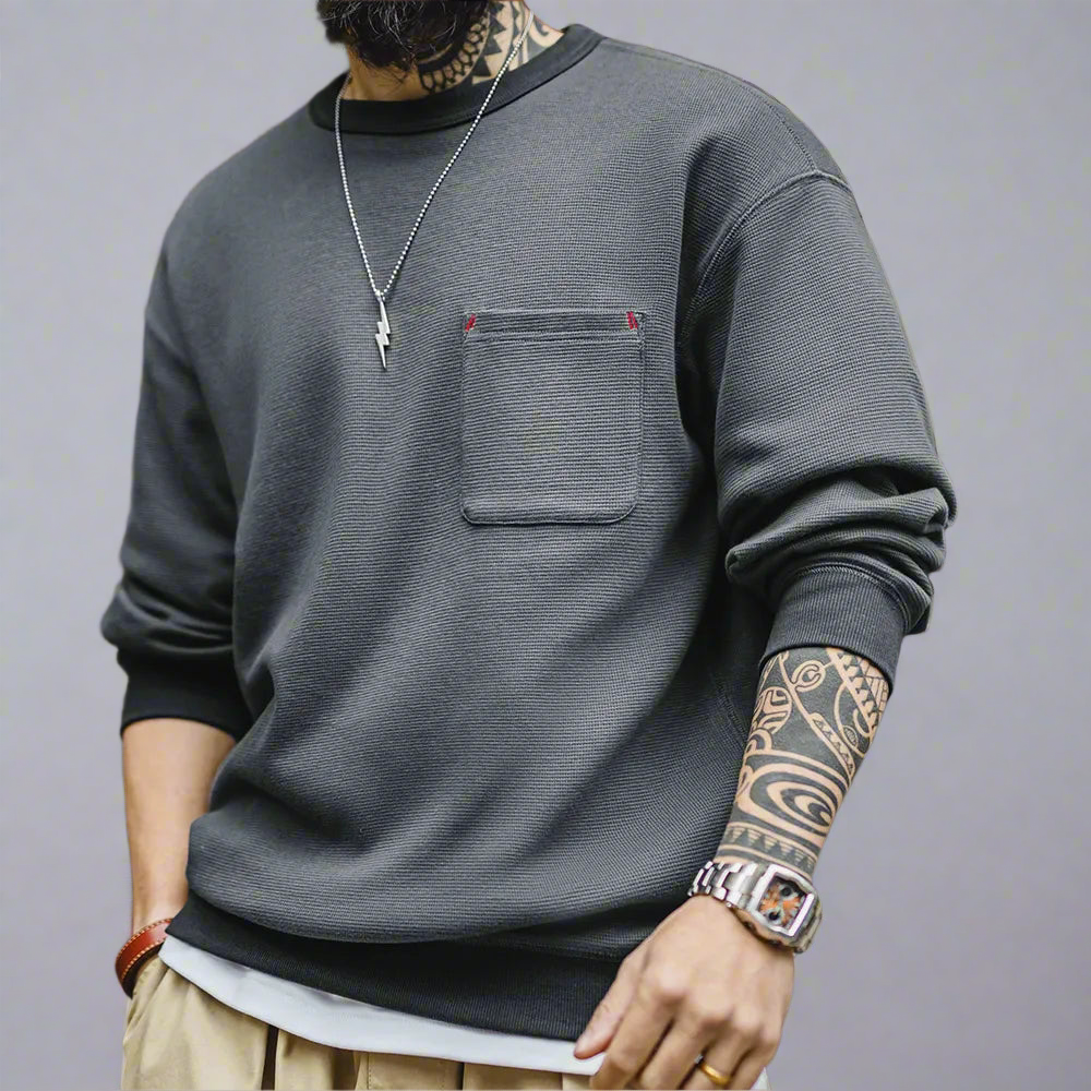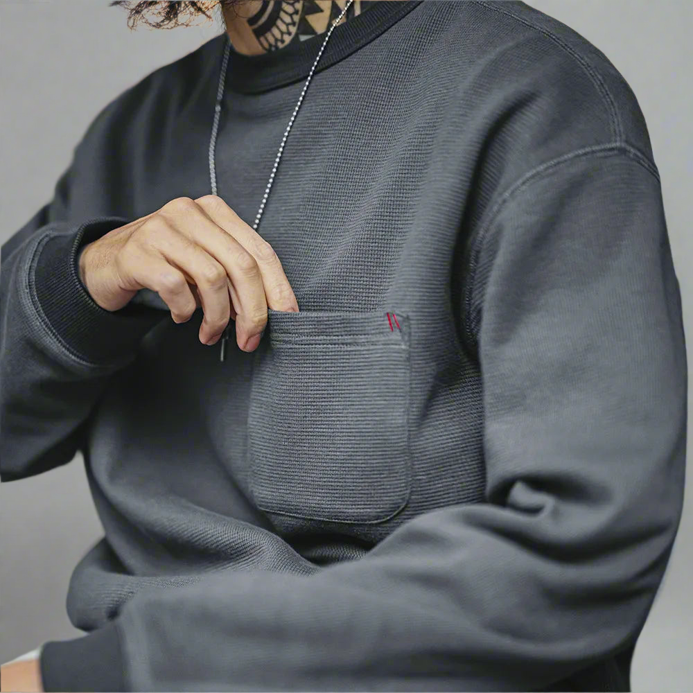 Waffle Knit Pocket Crewneck