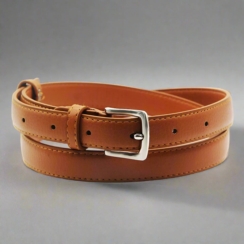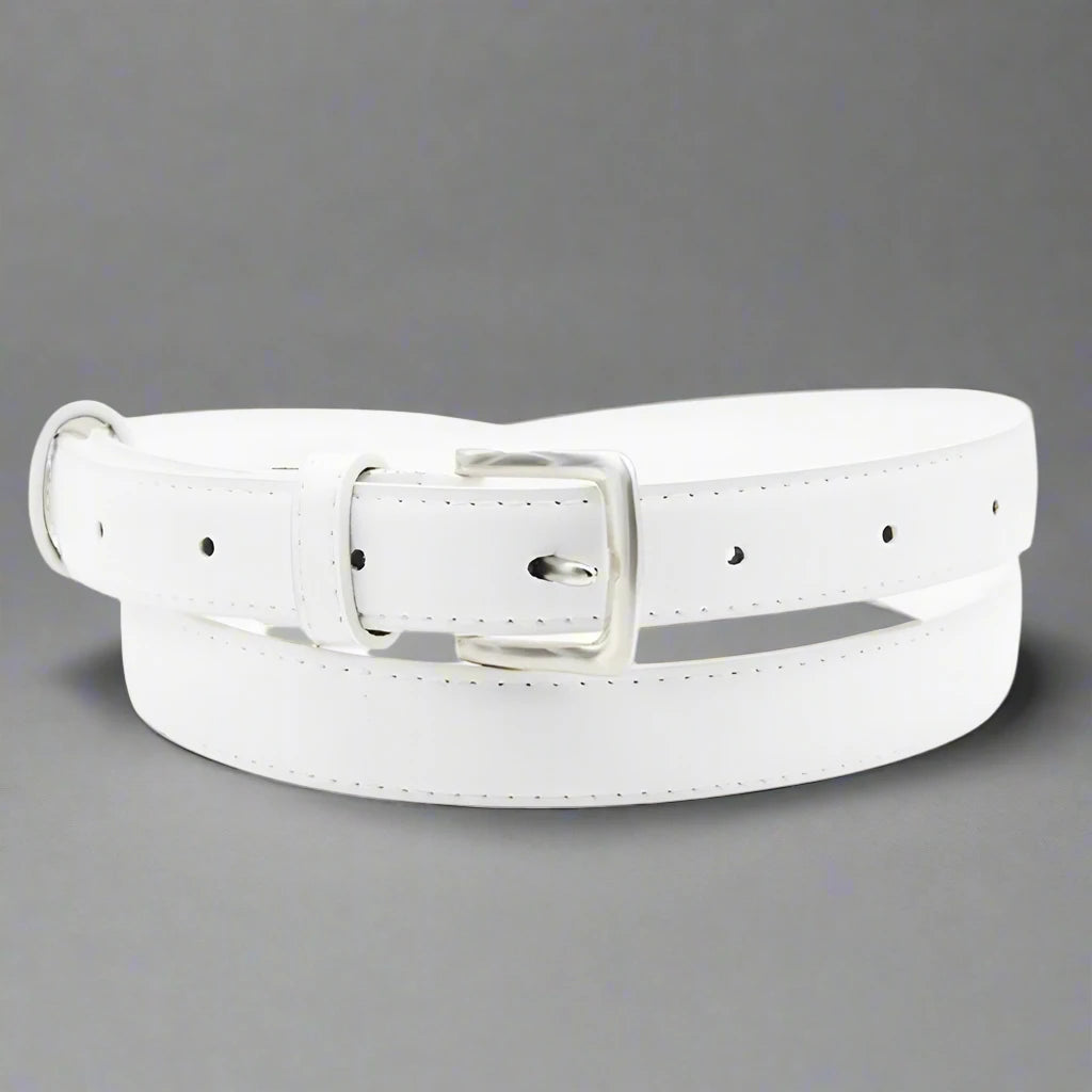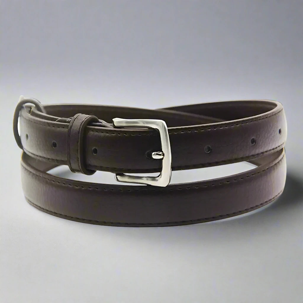 A sleek and timeless design defines this minimalist belt, crafted for effortless pairing with both casual and polished looks. Finished with a classic metal buckle, it’s a versatile wardrobe staple that cinches the waist with understated style.
