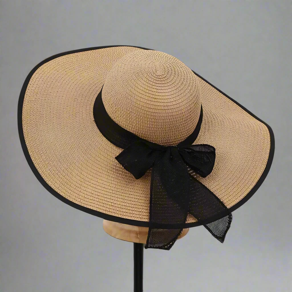 Elegantly designed with timeless appeal, this wide-brim straw hat features a flowing bow detail and structured silhouette for polished sun protection. Perfect for garden parties, beach days, or summer strolls, it blends fashion and function effortlessly.