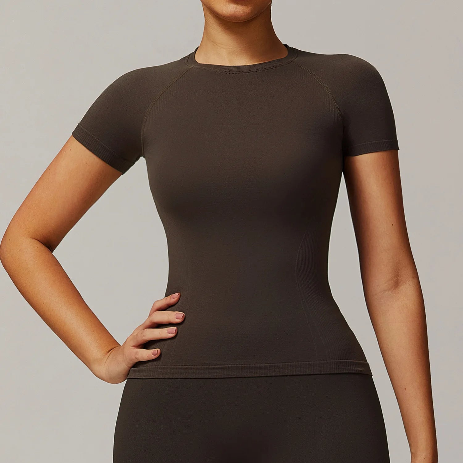 A sleek, body hugging silhouette defines this seamless performance tee crafted from ultra-soft stretch fabric for maximum comfort and mobility. Designed to contour and move with you, it’s perfect for both studio sessions and on the go style.